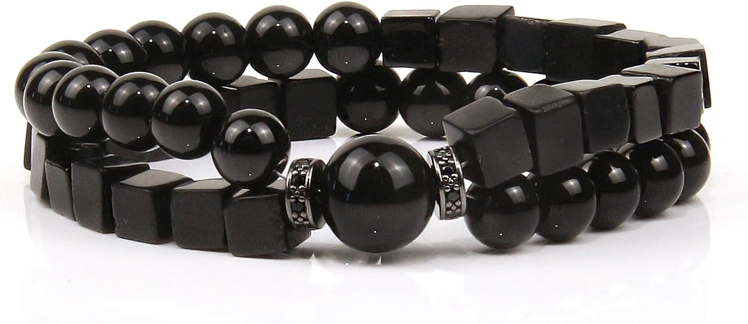 Beaded Bracelets for Men - Inspirational Bracelets - Handmade Natural Stone Stretch Bead Bracelet Men Fathers Day Thanksgiving Christmas Birthday Gifts for Men