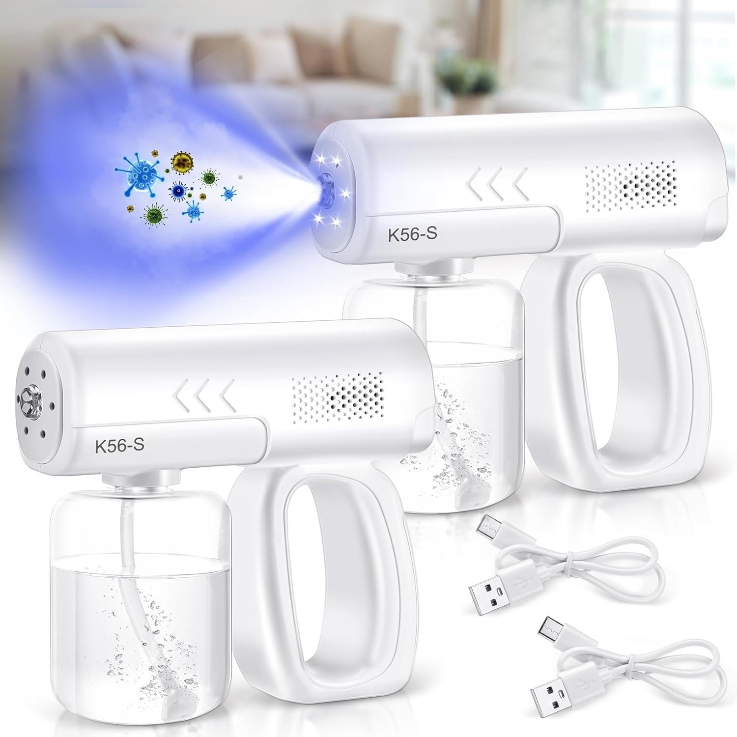 Qualirey 2 Pack Rechargeable Atomizer Sprayer Gun Handheld Nano Spray Cordless Steam Large Capacity Electric Fogger Machine for Car School Home Hotel, 1200mAh