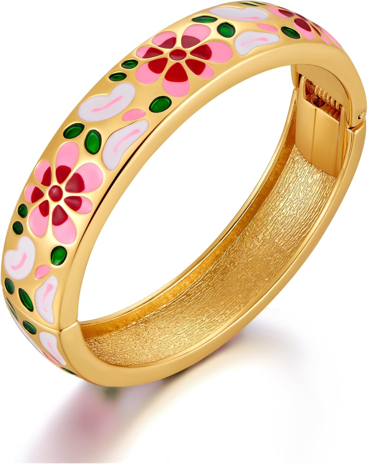 Colorful Hinged Bangles Bracelets for Women Cute Fruit Cherry Multicolor Flower Enamel Gold Bracelets Statement Wide Chunky Bracelet