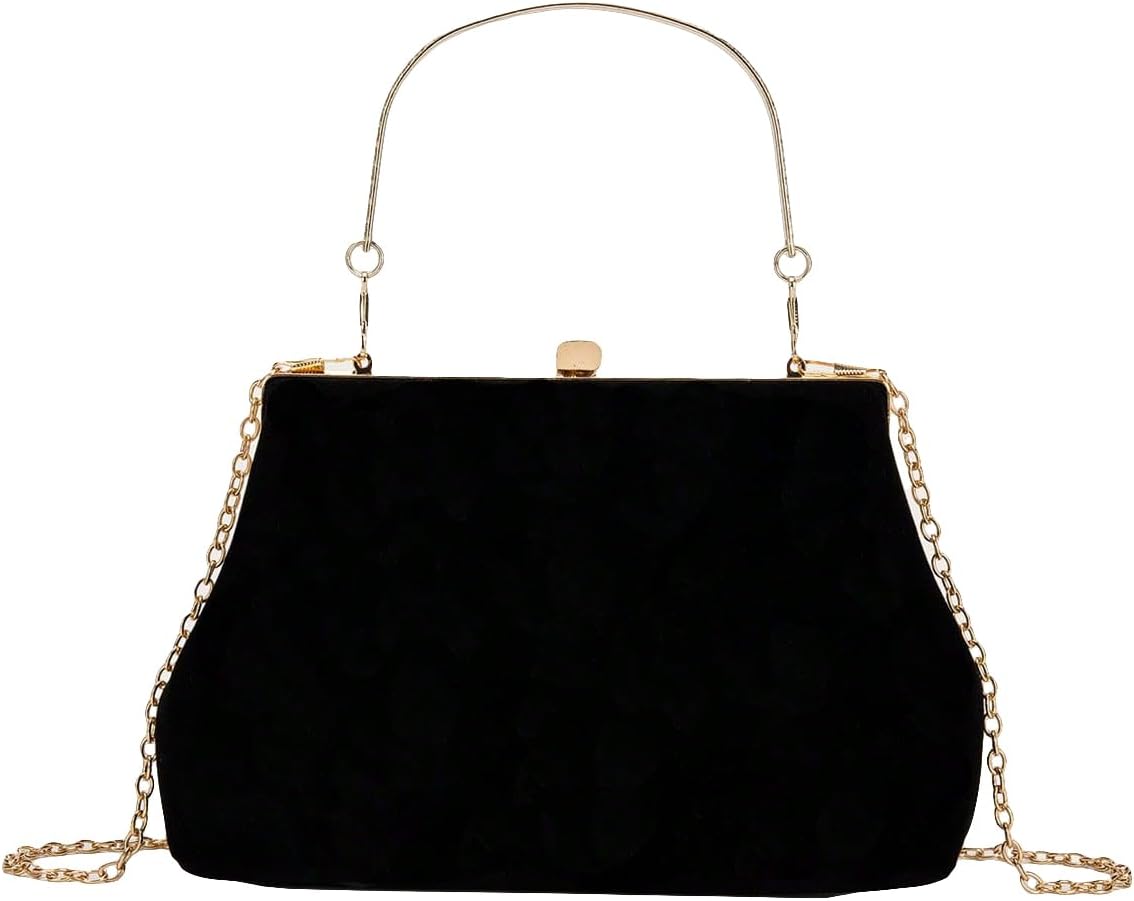 OYOANGLE Women's Kiss Lock Top Handle Solid Evening Bag Chain Shoulder Strap Glamorous Clutch Purses
