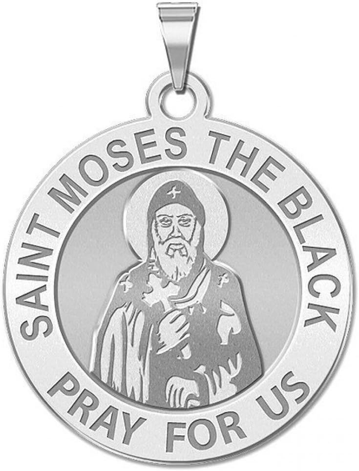 PicturesOnGold.com Saint Moses the Black Religious Medal - 3/4 Inch Size of a Nickel in Sterling Silver