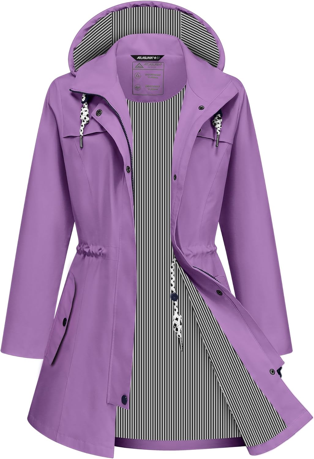 Rain Jacket Women Waterproof Long Lightweight Raincoat Hooded Windbreaker Outdoor Trench Coat S-3XL