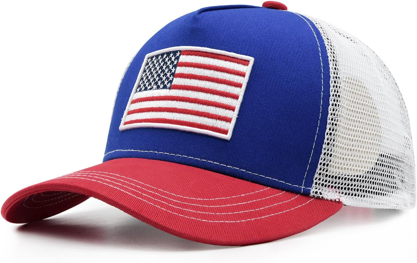 American Flag Trucker Hat, Snapback Mesh USA Flag Baseball Caps, 4th of July for Men Women