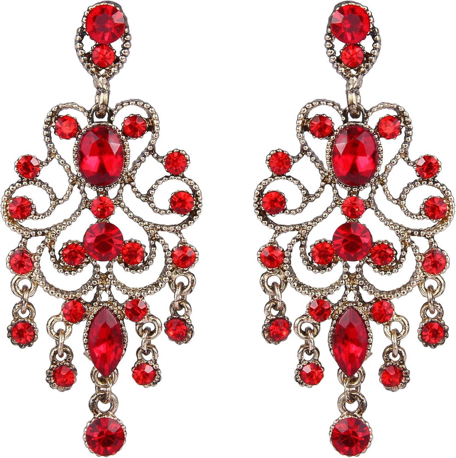 BriLove Women's Vintaged Style Wedding Bridal Crystal Drop Hollow Chandelier Filigree Dangle Earrings