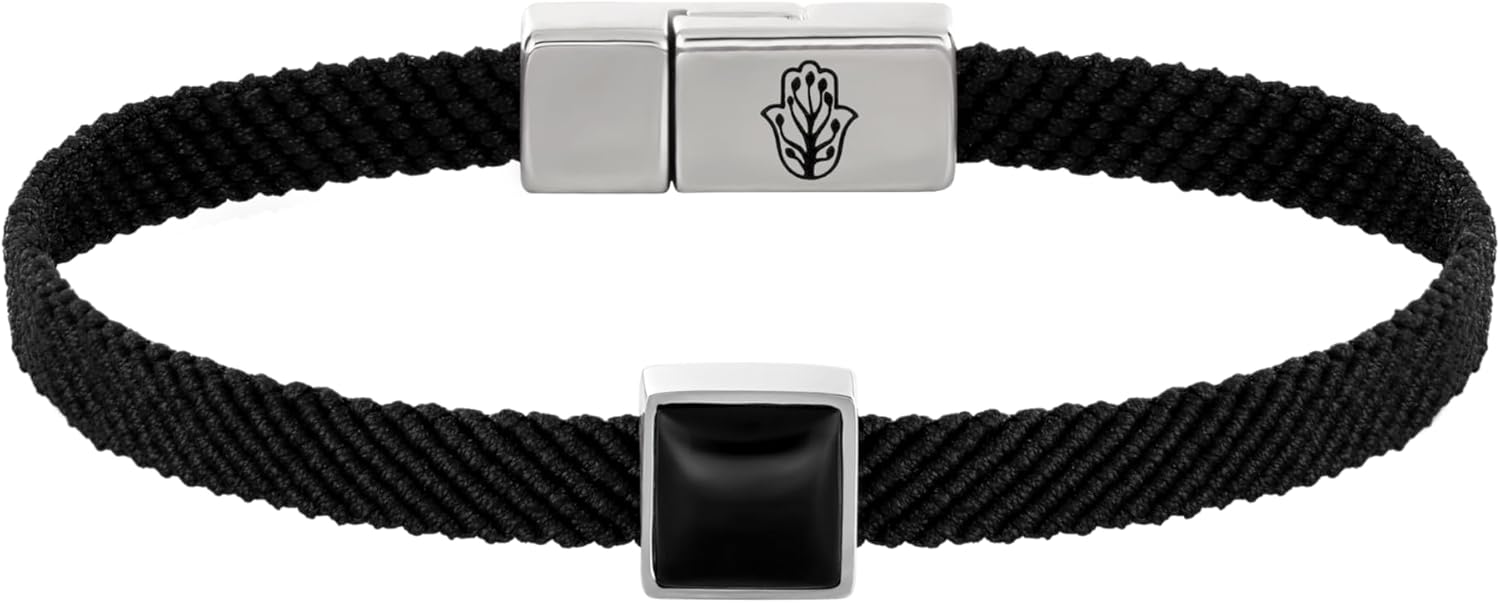 KARMA AND LUCK Black Macrame Onyx Magnetic Bracelet, Stainless Steel Link, Available in Medium and Large