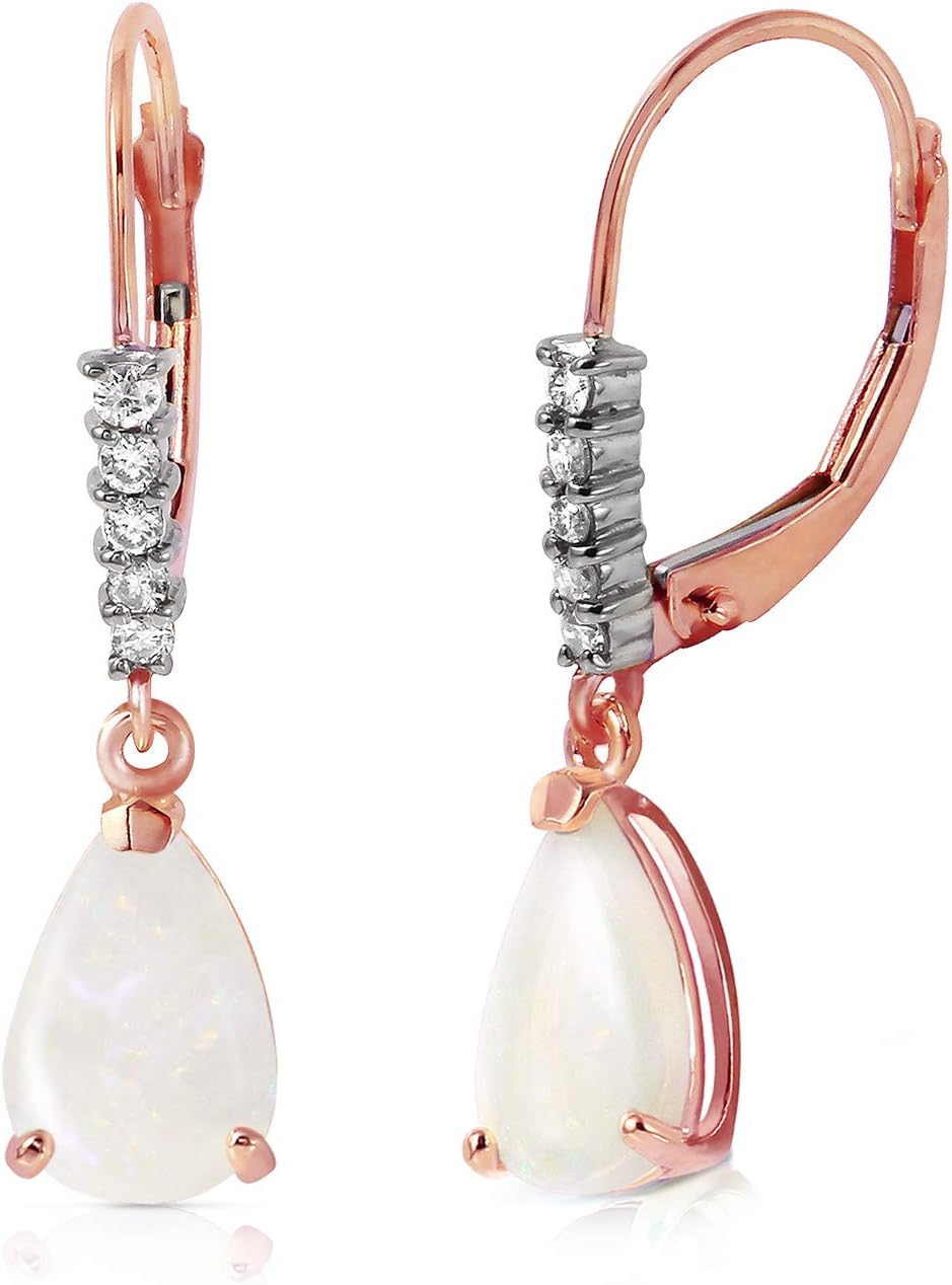 14k Solid Rose Gold Leverback Earrings with Natural Diamonds & Opals