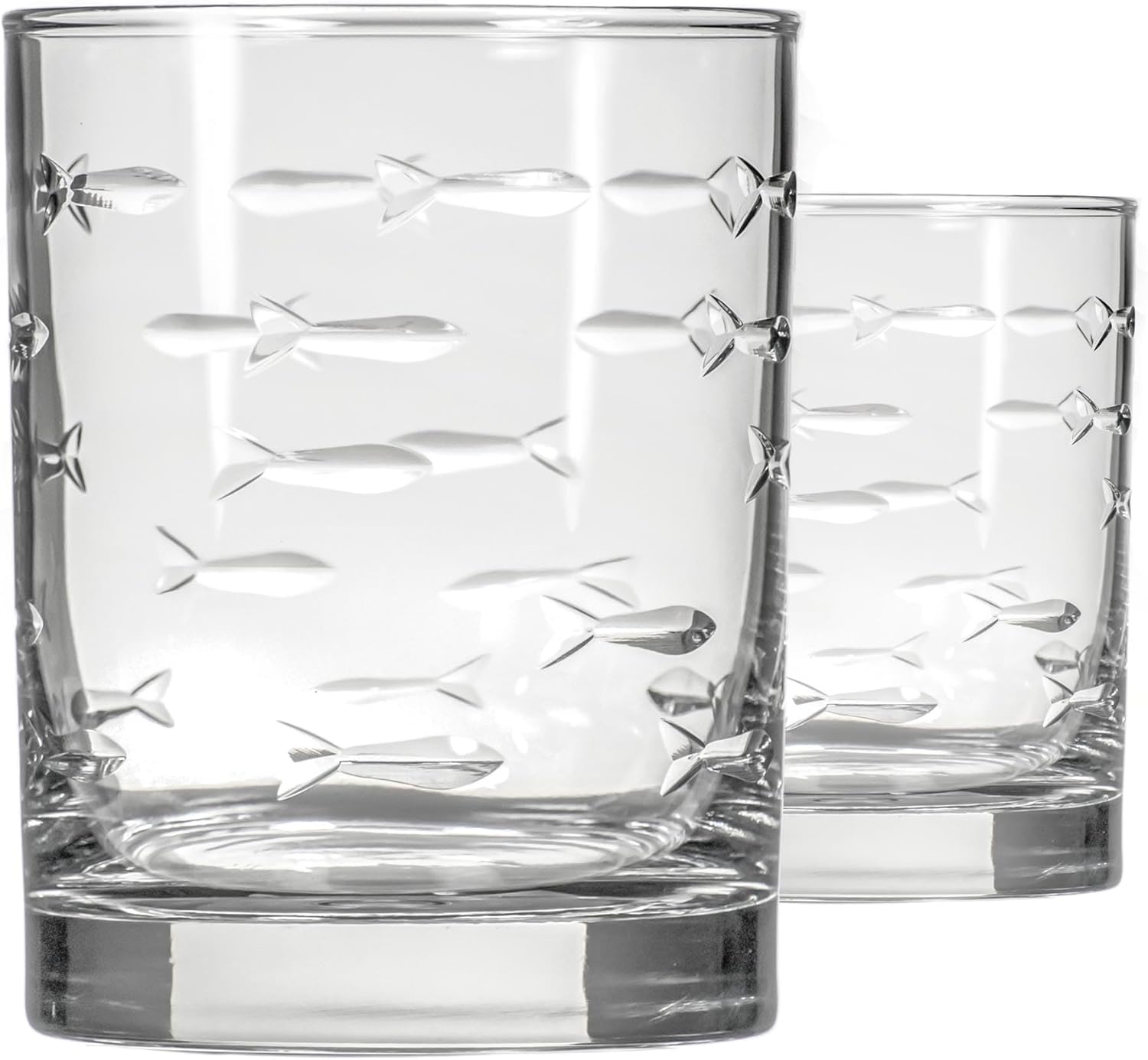 - TIMELESS COASTAL DESIGN: The Rolf Glass School of Fish collection is expertly diamond-wheel engraved and polished. This classic Rolf Glass design brings an elegant and timeless charm to your glassware collection.