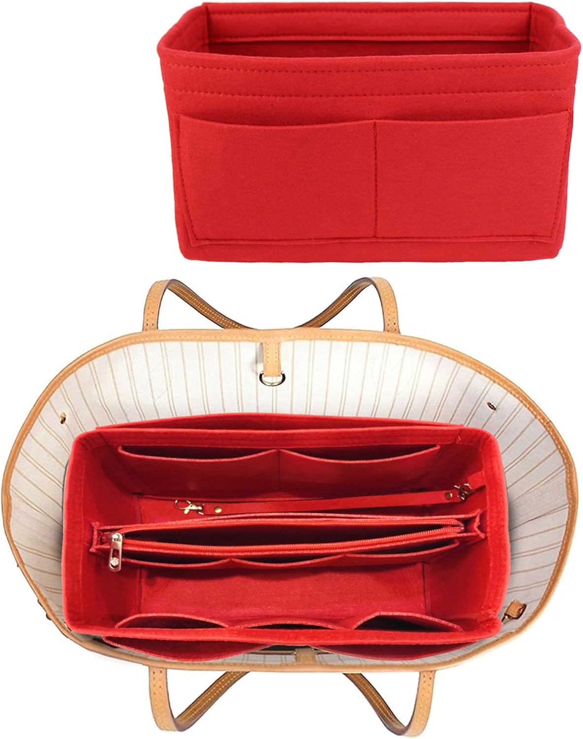 Purse Organizer Insert for Handbags, Felt Tote Bag Organizer Insert, Bag In Bag Compatible with Longchamp, Neverful, Speedy and More (Red, Large)