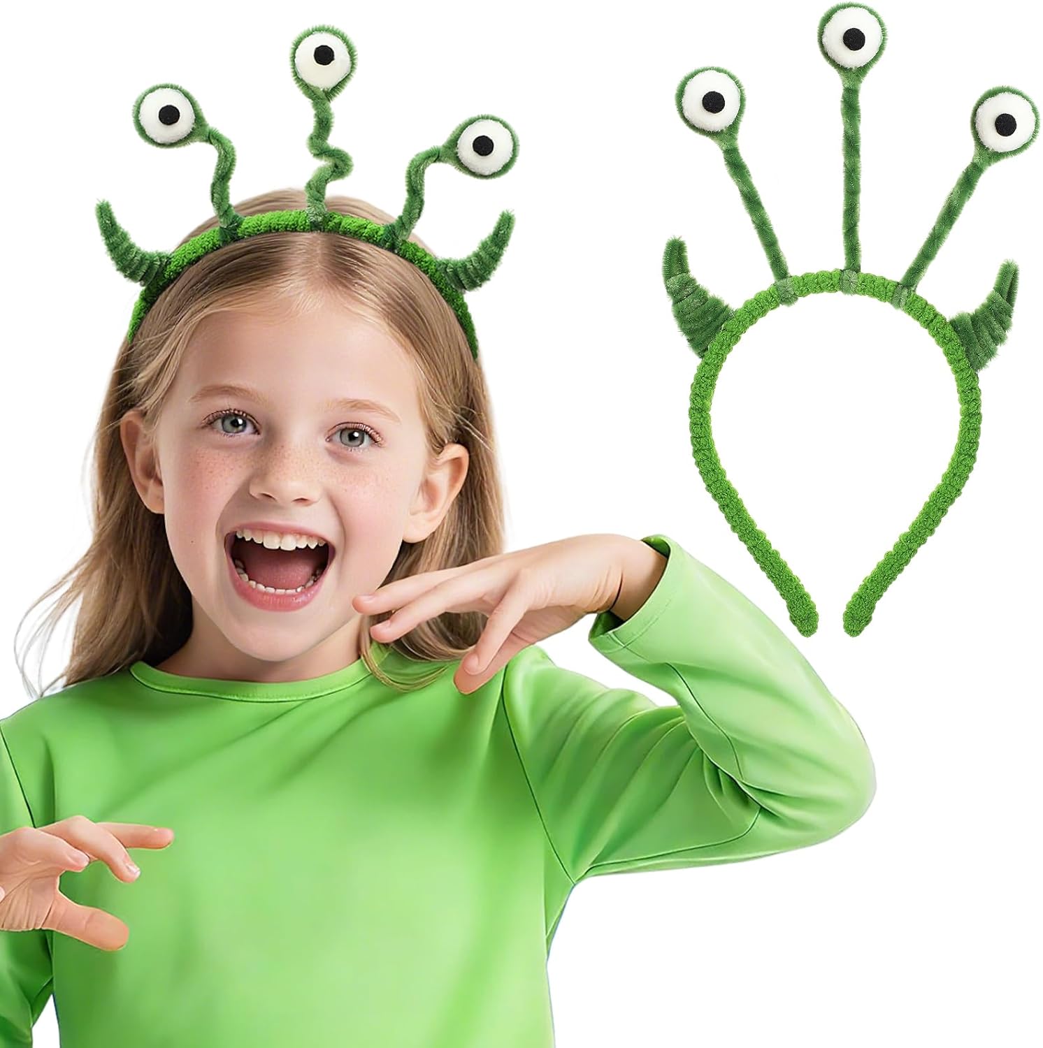 Bigmeta Alien Costume Halloween Headband - Soft Fuzzy Funny Headwear Accessories for Kids and Adults Cosplay Theme Party Gifts, Green
