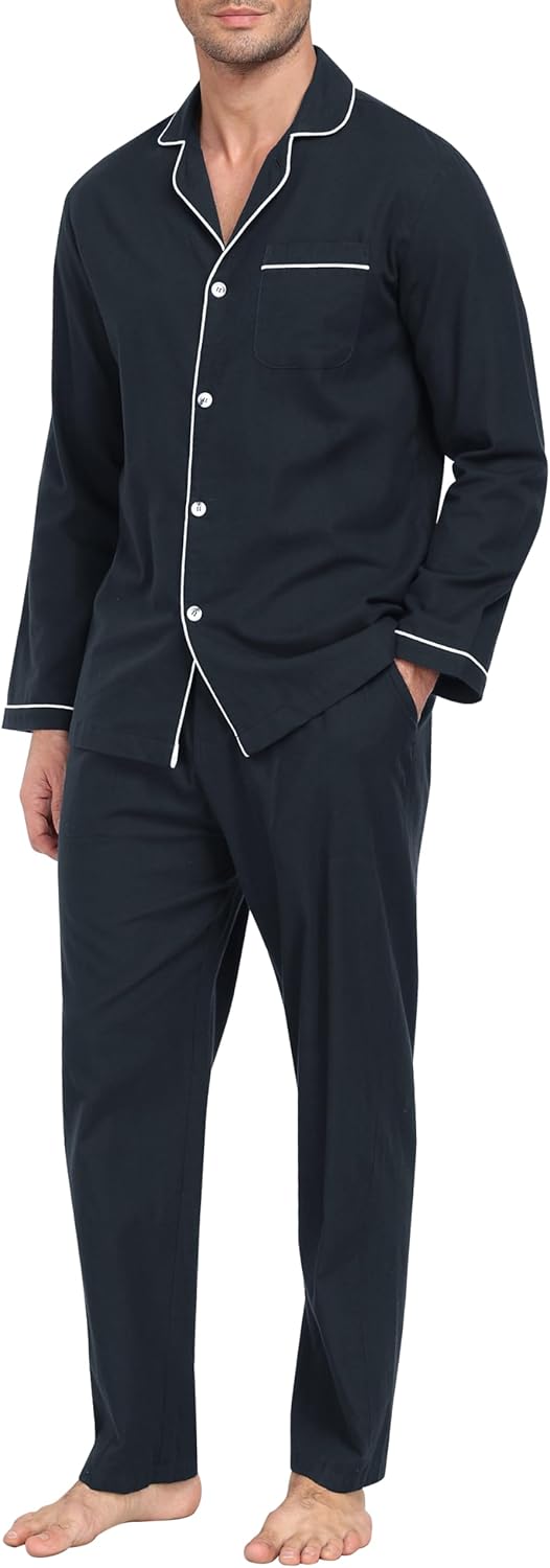 MoFiz Men's Cotton Pajamas Sets Sleepwear Long Sleeve Button Down Loungewear with Pants Soft Pjs Lounge Set with Pockets