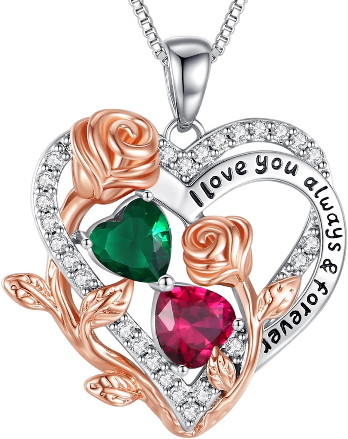 I Love You Birthstone Necklace, 925 Sterling Silver Heart Pendant with CZ Diamond Stones, Birthday Gifts for Women, Romantic Gift for Wife, Girlfriend, Her, Anniversary, Valentine's Day, Christmas