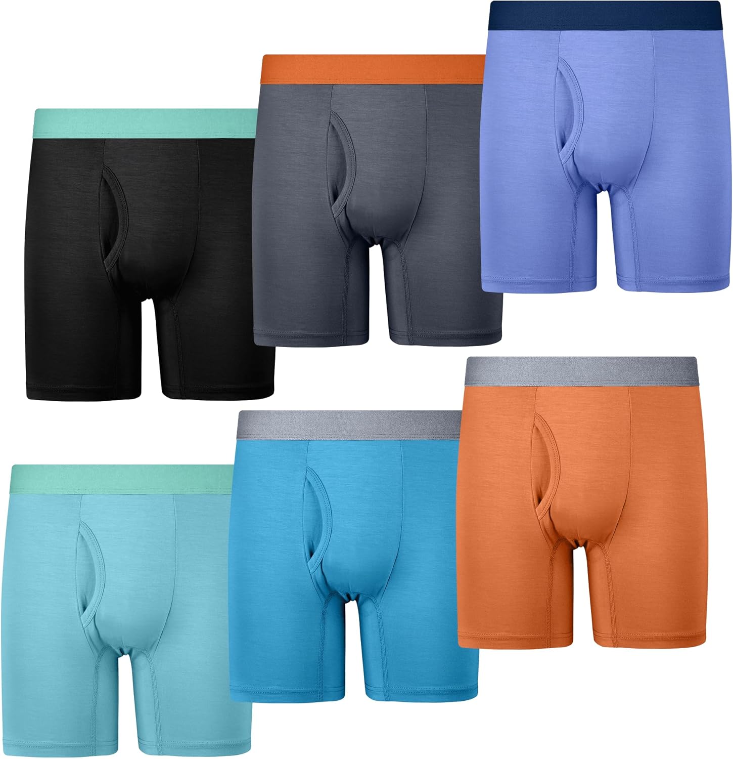 Boys' Boxer Briefs 6-Pack – Soft, Breathable, Tagless, Moisture-Wicking Underwear with Fly, Lightweight & Stretchy