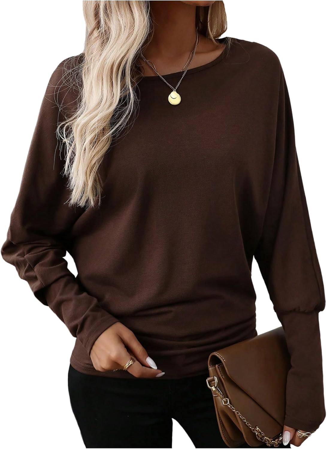 Verdusa Women's Ruched Dressy Casual Tops Cinched Waist Long Sleeve T Shirts Fall Clothes