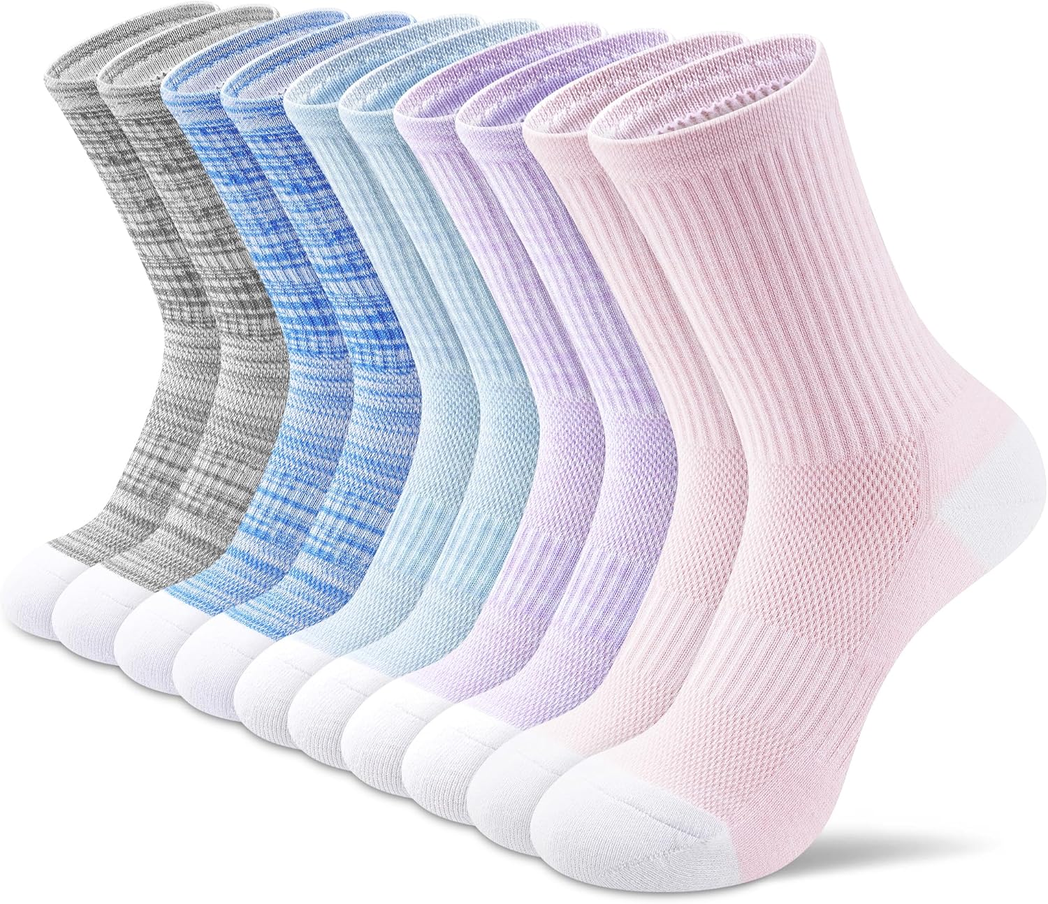 Crew Socks for Women,Athletic Hiking Running Compression Socks with Cushioned Support 3-6 Pairs
