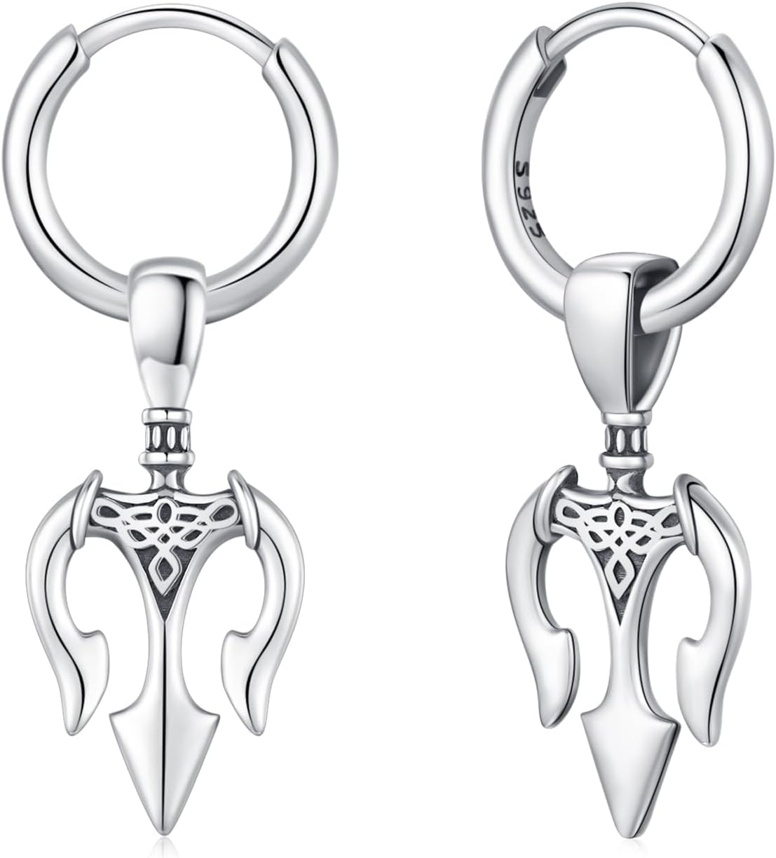 Sword Drop Earrings 925 Sterling Silver Trident earring Celtic Viking Earrings Hypoallergenic Punk Gothic Jewelry Halloween Gifts for Women Men