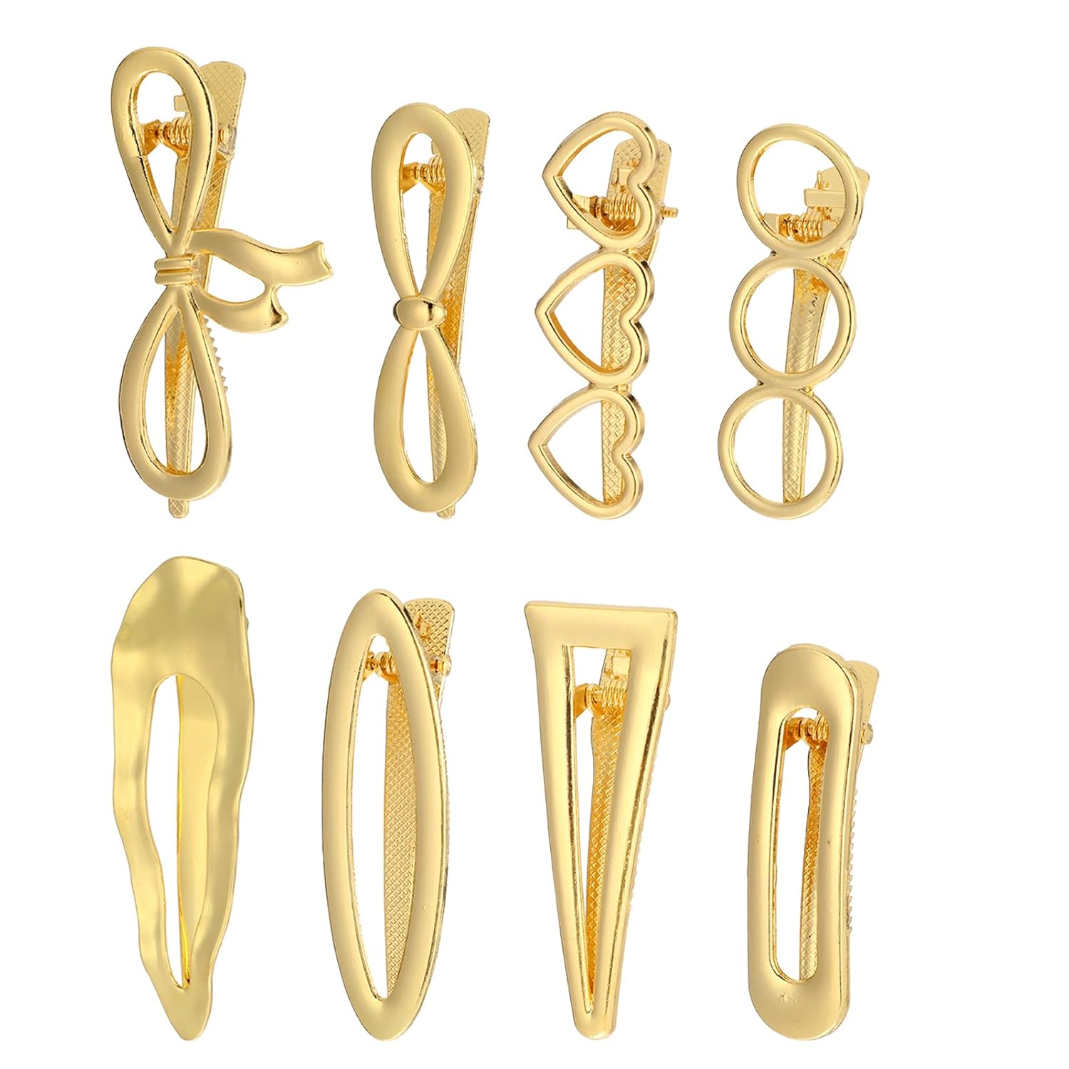 - Versatile Styling: these gold hair clips come in 8 unique designs, including hearts, triangles, bows, and infinity symbols, helping you create stunning hairstyles for any occasion