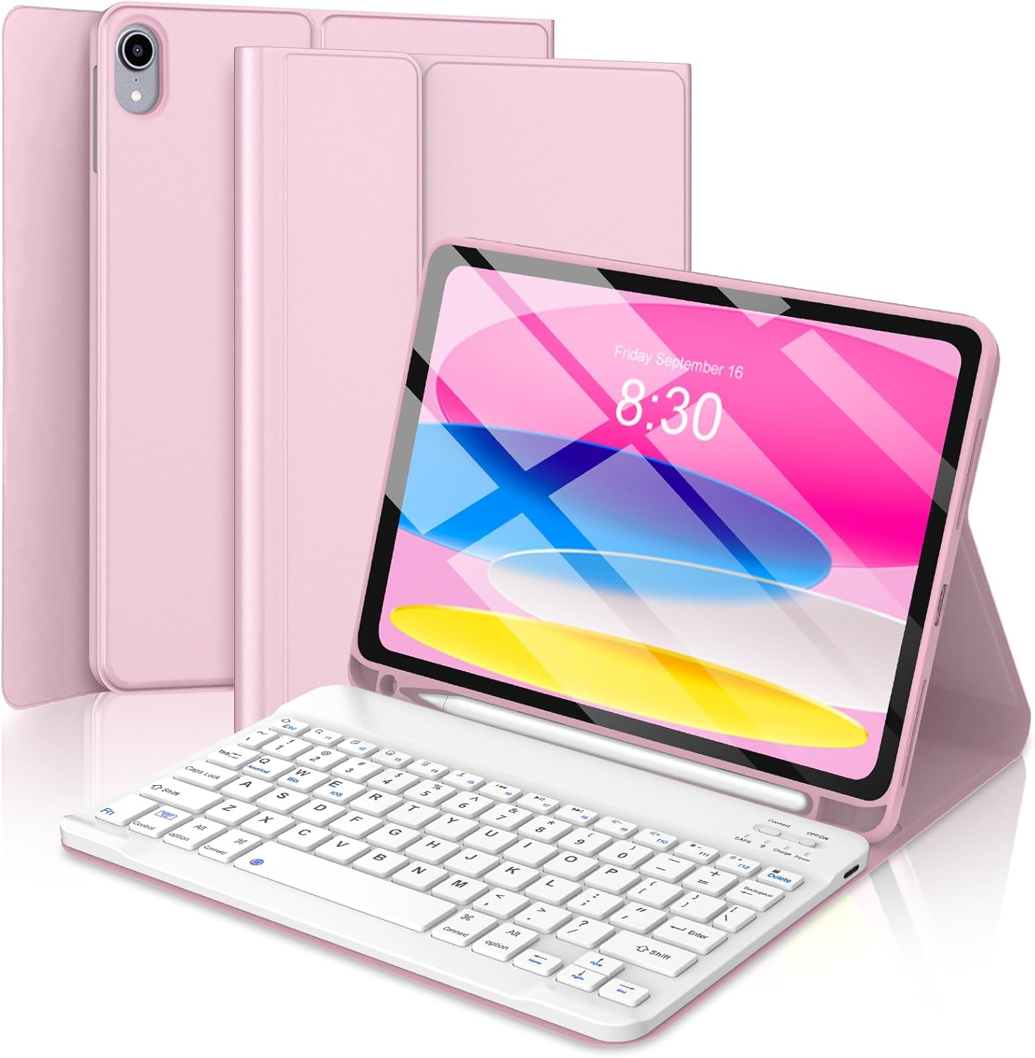 - 【All-in-One 2-in-1 Design】 Instantly transforms your iPad into a productive laptop. The detachable backlit keyboard connects via Bluetooth for responsive, lag-free typing. The built-in Pencil Holder securely stores your Apple Pencil (1st Gen or USB-C) and allows for easy removal, keeping your stylus safe and always ready.