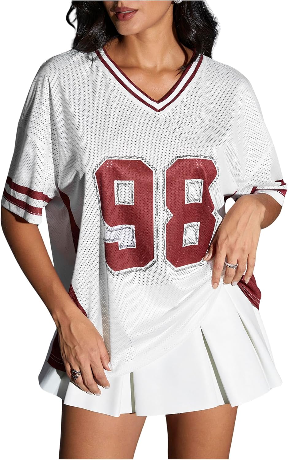 Verdusa Women's Jersey Shirts Y2k Tops Baggy Shirts Graphic Summer Oversized T Shirt Top