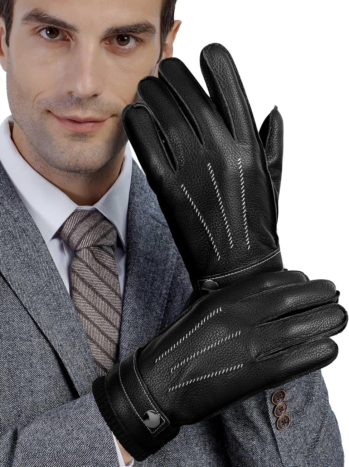 GSG leather gloves for men Sheepskin Classic Driving Gloves Winter Touchscreen Wool Lined Warm Gloves