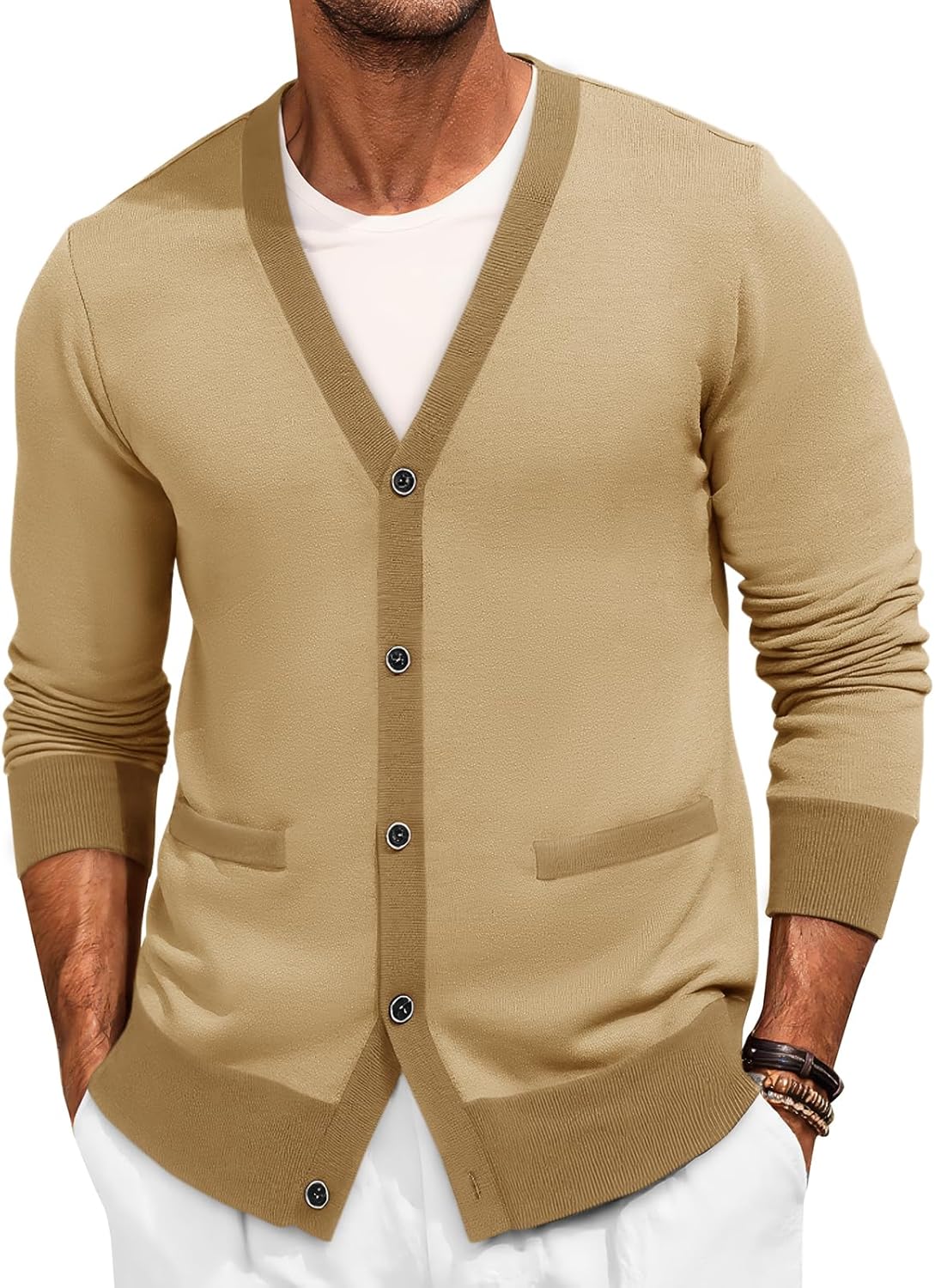Runcati Men's Cardigan Sweater Long Sleeve V Neck Cardigan Casul Button Down Knitted Sweaters with Pockets