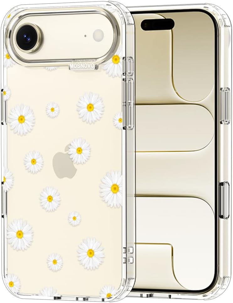 MOSNOVO for iPhone Air Case | Military Grade 6.6ft Drop Tested | Camera Control | Clear with White Daisy Design