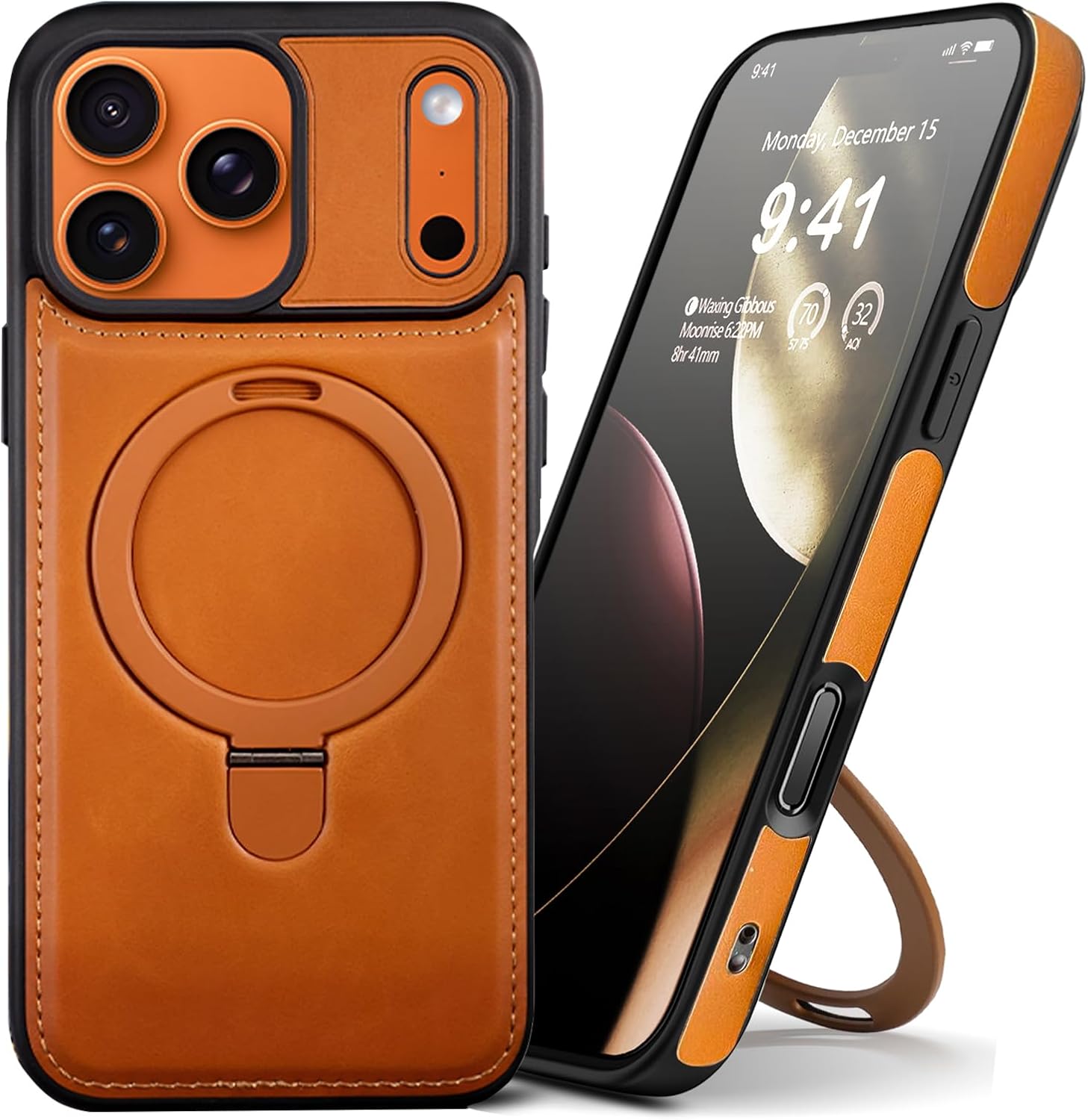 ![for iPhone 17 Pro Leather Case with Magnetic Ring Holder,[Compatible with Wireless Charging] Luxury Slim Shockproof Non-Slip Protective Kickstand Cover for iPhone 17 Pro (Brown) - Image 2](https://m.media-amazon.com/images/I/71Ovx5zdnOL._AC_SL1500_.jpg)