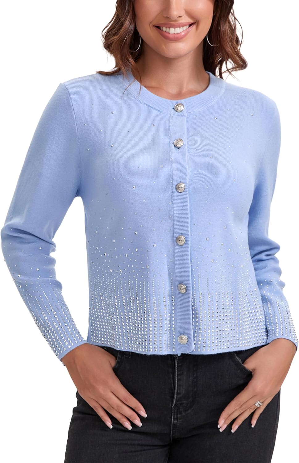 Froggirl Women's Sparkle Rhinestone Button Down Cardigan Sweater – Elegant Long Sleeve Knit Jackets Top