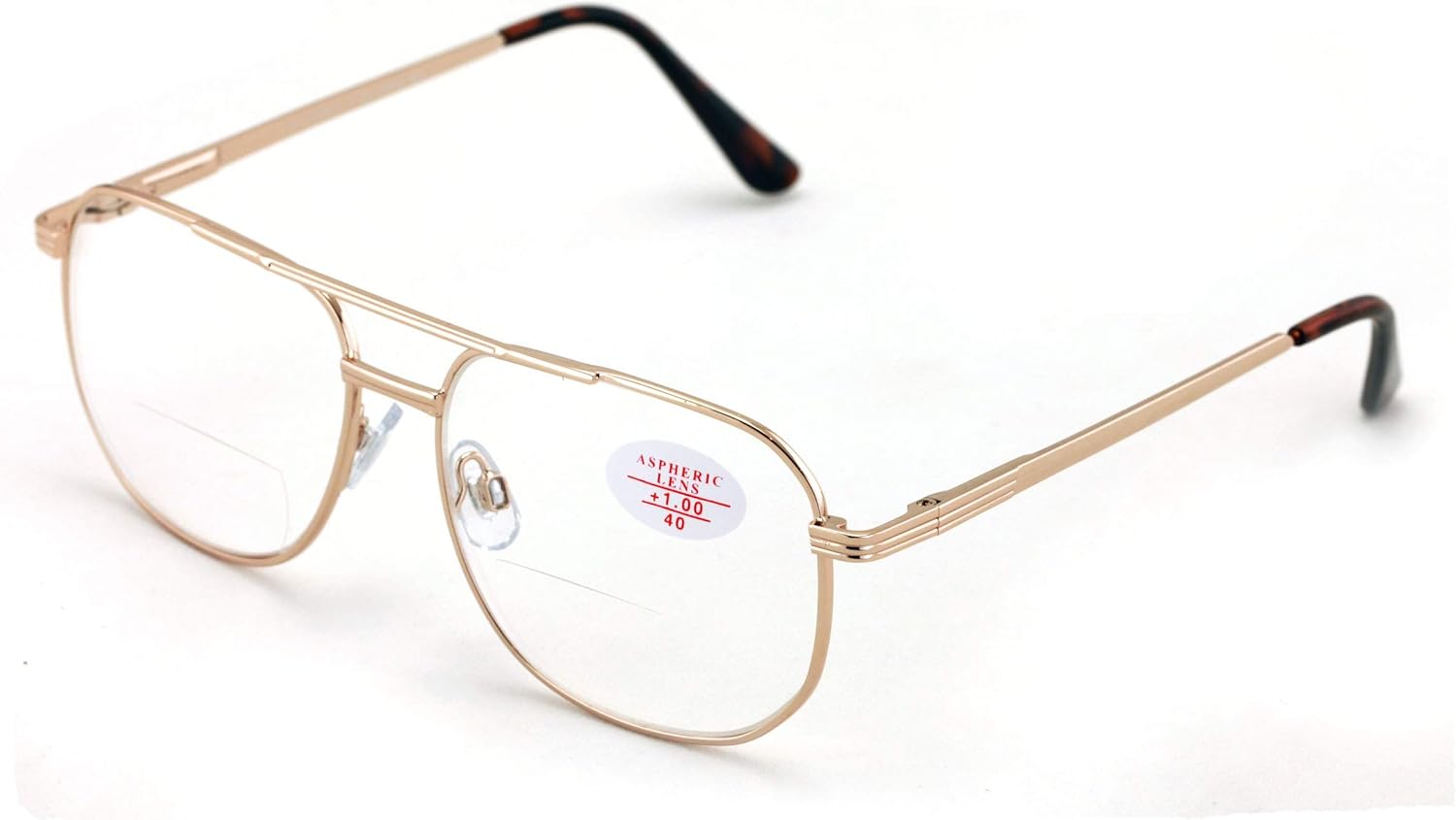 V.W.E. Bifocal Metal Tear Drop Reading Glasses - Big Lens Spring Hinge Square Reader - Clear lens