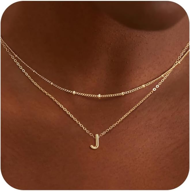 LEXODY Gold Initial Necklaces for Women, 14k Gold Plated Round Letter A-Z Pendant Necklace Trendy Capital Monogram Necklace Dainty Name Pendant Necklace for Women Jewelry Gifts