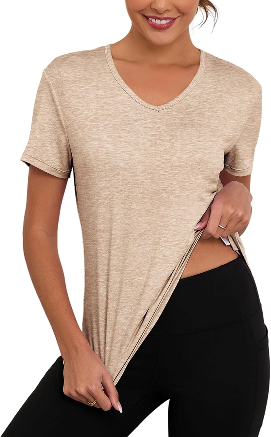 V Neck Workout Tops for Women UPF 50+ Breathable Loose Fit Short Sleeve Tee Shirt Yoga Gym Basic T Shirts