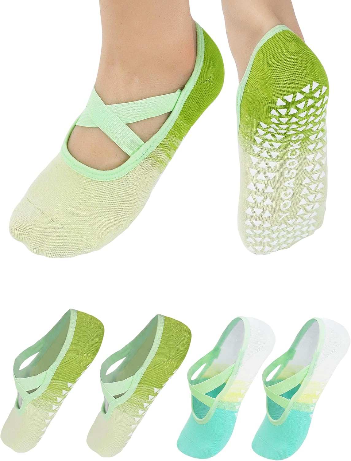 LemonGirl Womens Non-Slip Yoga Socks US 5-8 with Grips 2 Pairs Gradient Color for Pilates Barre