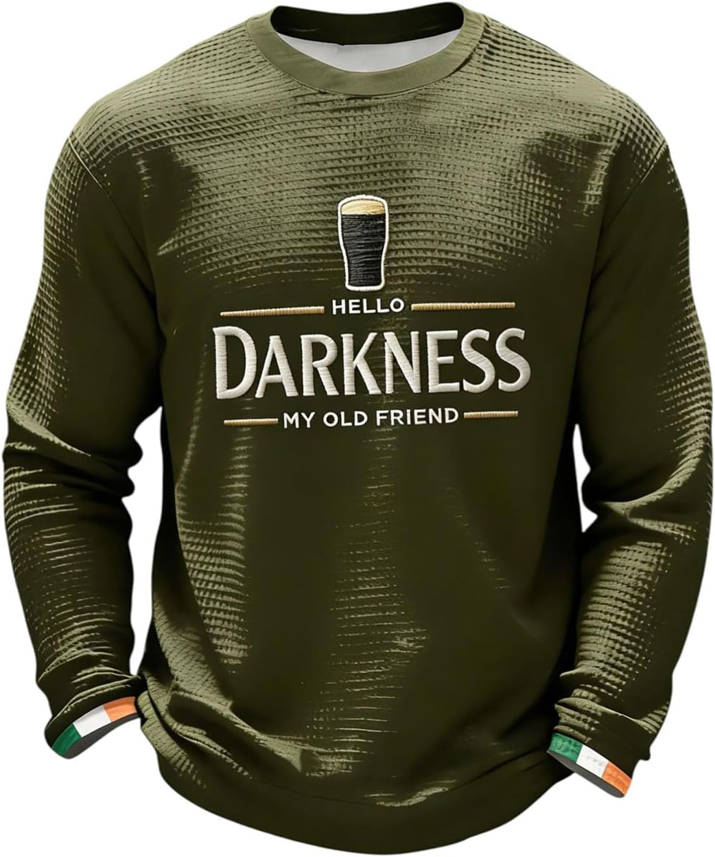 Men's Hello Darkness My Old Friend Shirts Waffle Long Sleeve St. Patrick's Day Shirt