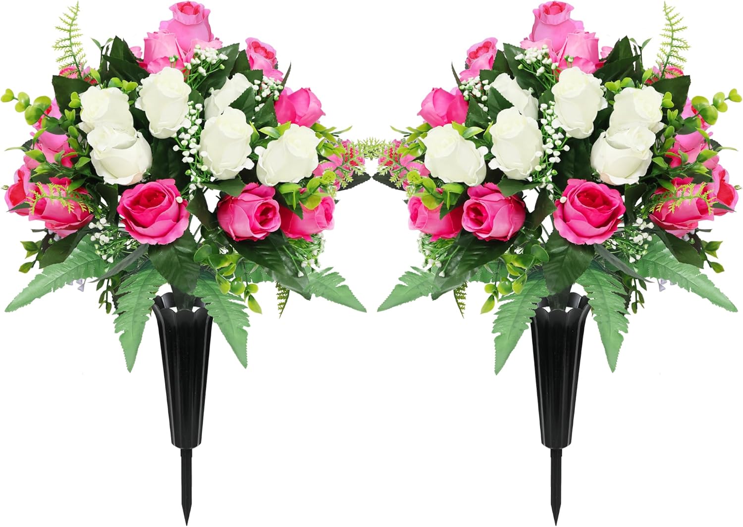 - Package Inclued:This cemetery flower set includes 2 bouquet and 2 long-stem vases;include foam plastic,which can resist bad rainstorm and keep the flowers stand upright;ensuring the long lasting beauty of the grave decorations for cemetery