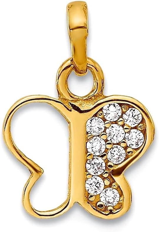JewelryWeb 8.9mm 14k Solid Yellow Gold Polished Cubic Zirconia Butterfly Angel Wings Pendant Necklace Pendant for Women