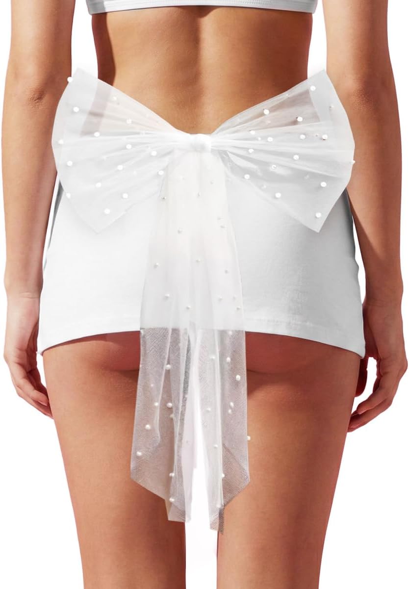 xo, Fetti Pearl Bikini Bow | Bachelorette Party, Beach Bach, Bride To Be, Bridal Shower, Bikinis and Martinis, White Tulle, Pearl Embellished