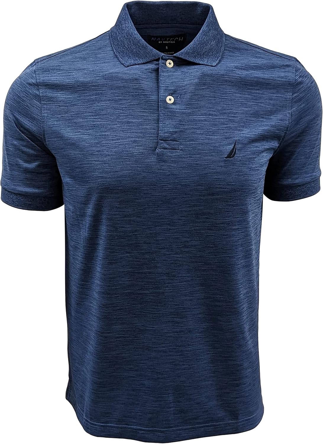 Nautica Men's Nav Tech Performance Polo Shirt (Small, Steel Blue Heather)