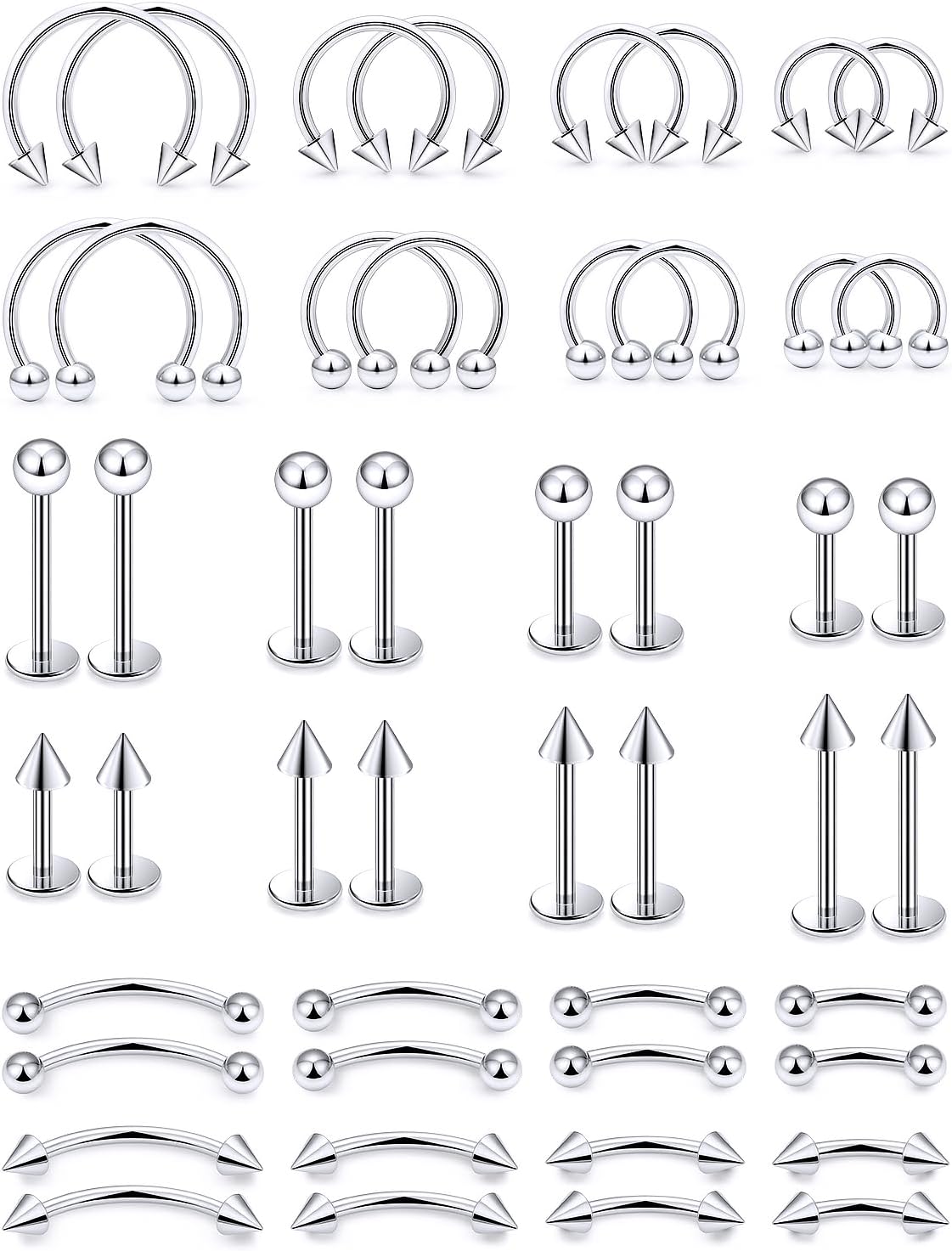 16G 20G Horseshoe Septum Nose Lip Rings Surgical Steel Tragus Forward Helix Conch Rook Daith Snug Cartilage Earring Medusa Vertical Labret Snake Bite Monroe Lip Piercing Jewelry for Women Men