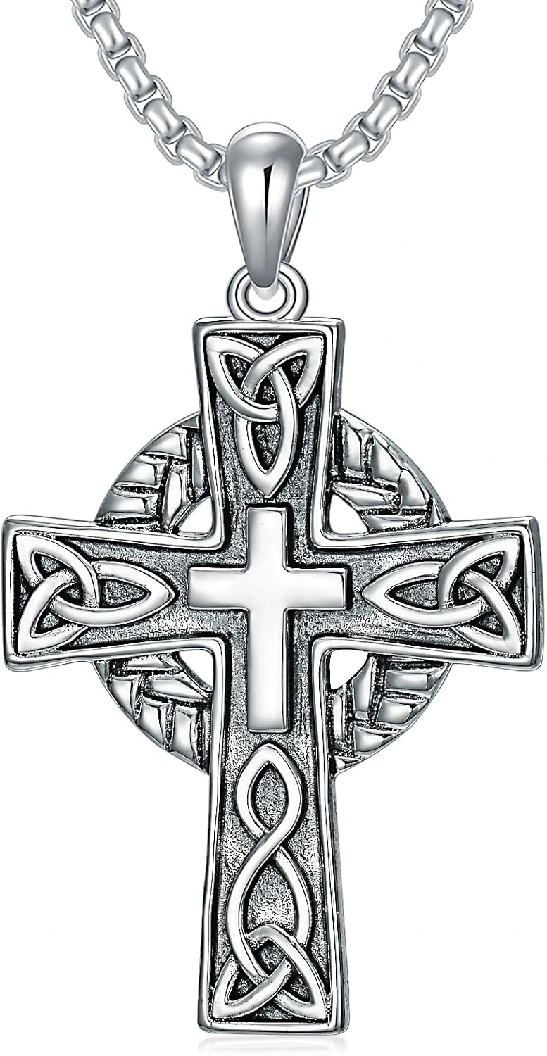 Celtic Cross Necklace For men Silver Cross Pendant Necklace Mens Celtic Cross Celtic Amulet Necklace Protection Jewelry Religious Gifts with 2.5mm 22"+2" Adjustable Rolo Chain