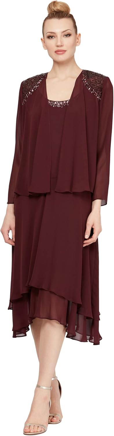S.L. Fashions Women's Mother of The Bride Dress with Embellished Neckline & Shoulder