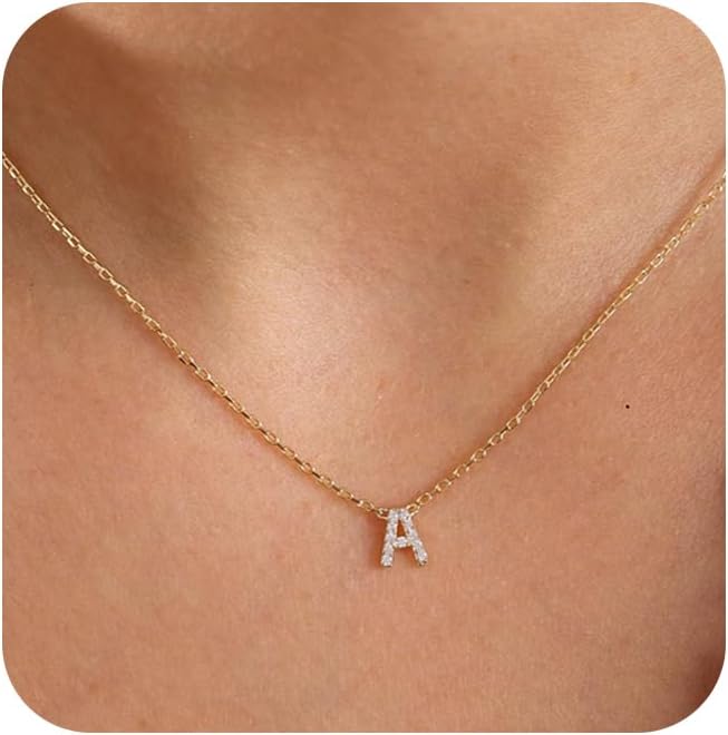 Initial Necklaces for Women, Dainty Gold Letter Necklace 14k Gold Plated Personalized CZ Initial Necklace Monogram Name Choker Necklace for Women Trendy Gold Jewelry for Women Gifts