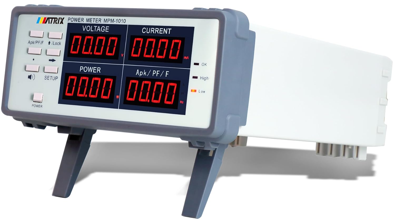 MATRIX Benchtop Digital Power Meter MPM-1010, High Precision Single-Phase AC/DC Power Meter 1-300V, 2mA-10A, 0.3-300W, 15-650Hz, True RMS Voltage Current Power Factor with Sound Light Alarm