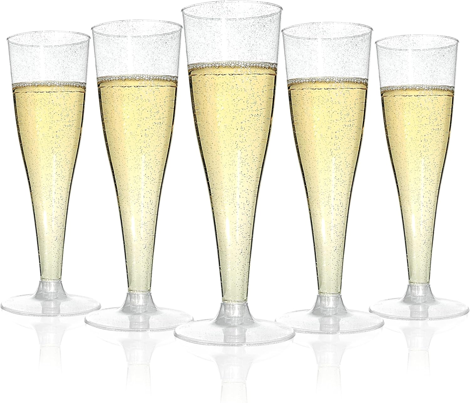 - Dazzling Appearance: Add glamour to any occasion with our 4.5 oz Silver Glitter champagne flutes; these plastic champagne creating a dazzling atmosphere for your guests; with 100 pack plastic mimosa glasses, you'll have enough for everyone to join in