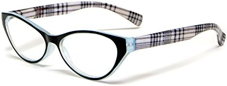 Calabria Emily Cateye Reading Glasses +1.25 Blue Black Plaid Women Stylish Fashion Eyeglass Cat Eye Single Power Readers