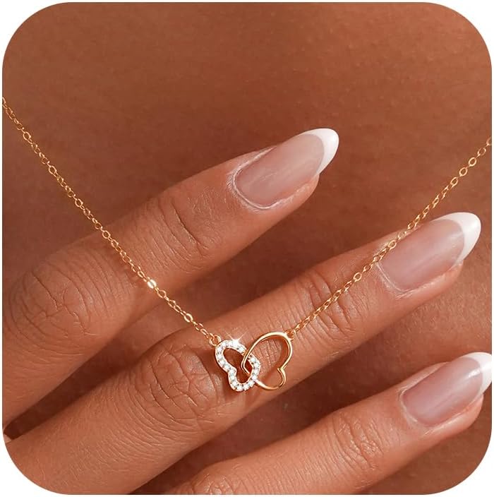14K Gold Plated Dainty Butterfly Heart Necklace for Women, 925 Sterling Silver Cubic Zirconia Love Heart Interlocking Pendant Necklace to Daughter Mother Birthday Valentines Jewelry Gifts