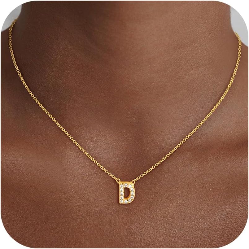 Christmas Gifts Dainty Gold Initial Necklaces for Women Girls Teens Kids Non Tarnish 14k Gold Plated Letter Zirconia Pendant Necklace Trendy CZ Initial Name Necklace Gold Jewelry for Women