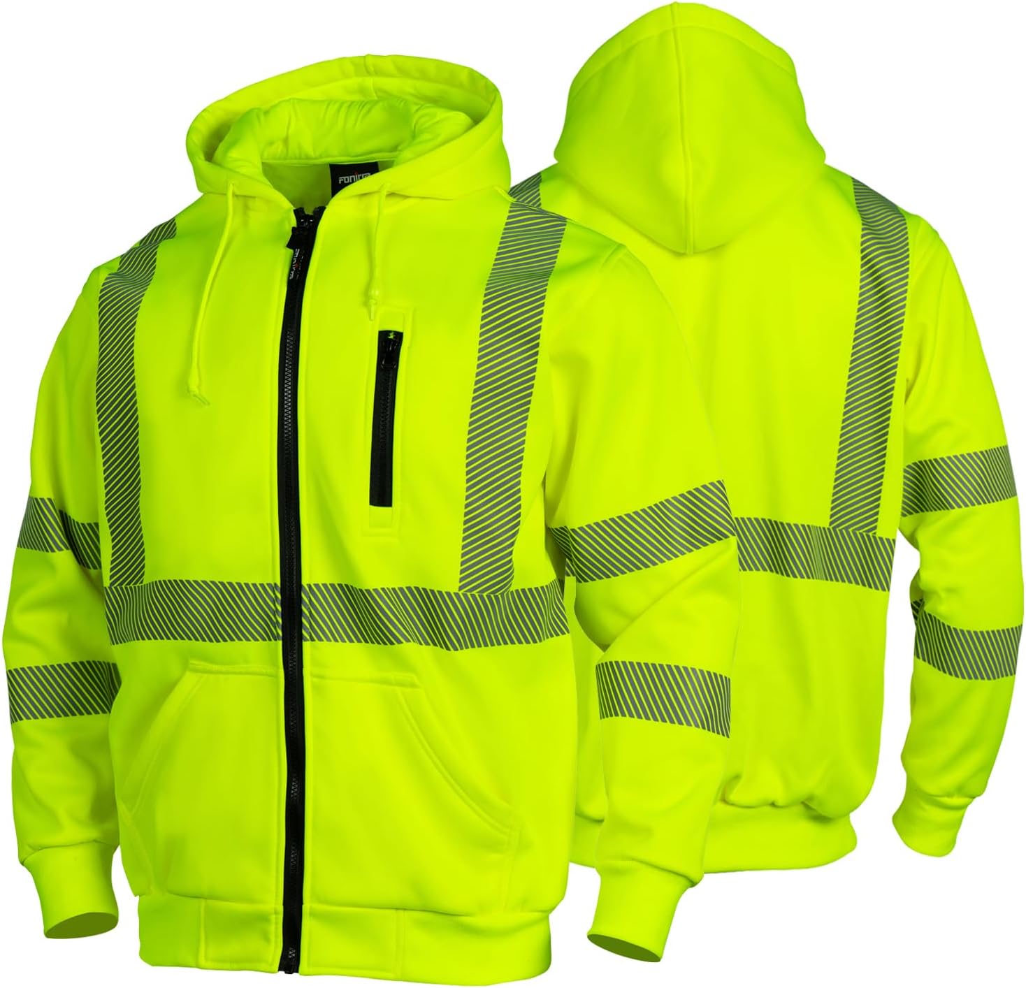 FONIRRA High Visibility Safety Work Hoodie for men Construction Hi Vis Reflective Fleece Sweatshirt with Zipper ANSI Class 3