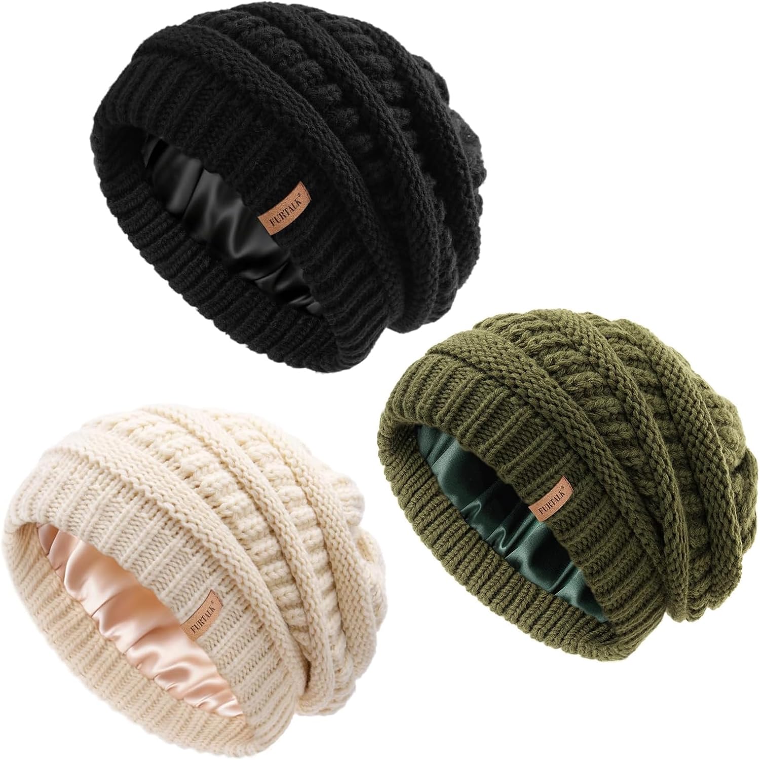 FURTALK Womes Slouchy Winter Beanie Knit Hat Satin Lined 3 Pack Thick Warm Fashionable Skull Cap