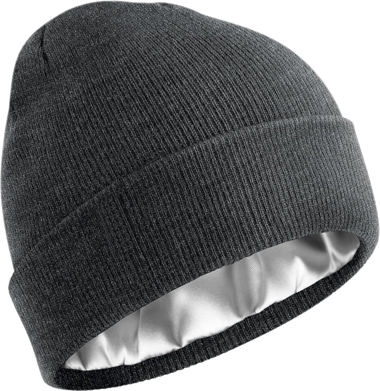Satin Lined Beanie for Women Men, Cotton Knit Winter Hat Silk Lining Soft Warm Cuffed Fisherman Beanies Hats Skull Cap