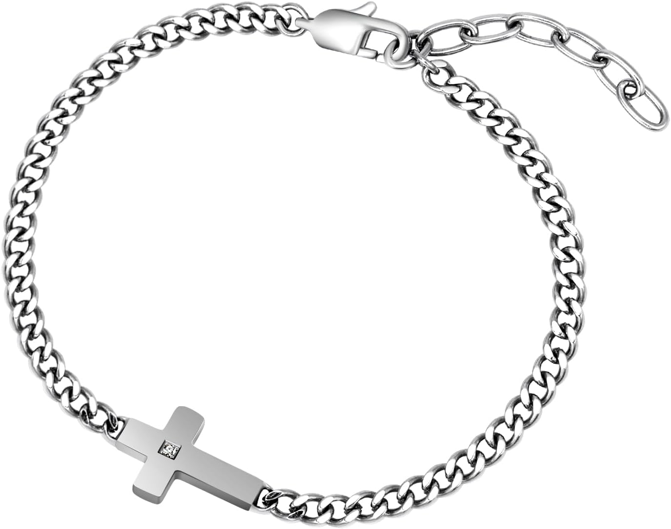 Silver Cross Chain Bracelets for Men Women,Stainless Steel Adjustable Curb Cuban Link Chain Bracelet Stylish Cross Jewelry,Christian Religious Jesus Confirmation Jewelry gifts