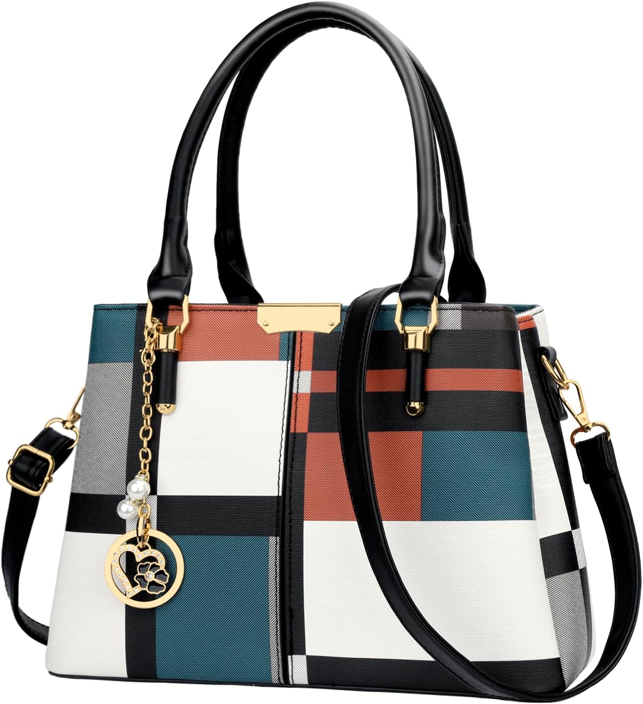 KKXIU 3 Zippered Compartments Purses and Handbags for Women Top Handle Satchel Shoulder Ladies Bags
